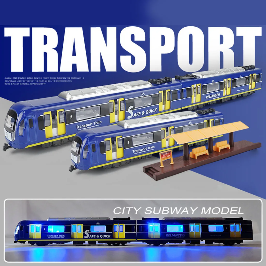 HIGH QUALITY 1:87 Simulation Pull Back Car Sand Table Commuting Alloy Train Model (Three Carriages) - Blue