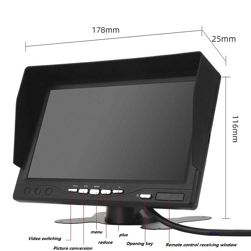7 Inch Car Camera Reversing Display 2 Split Screen Aviation Head Remote Control 12-24V Waterproof C